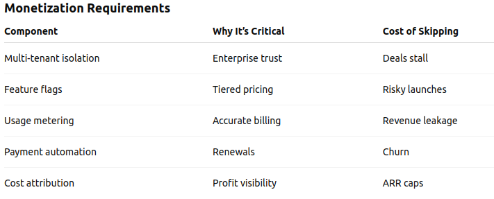 A B2B SaaS company launched with a single-database architecture. When their first enterprise customer demanded data isolation and audit trails, the entire data layer had to be rebuilt, costing four months of lost momentum.